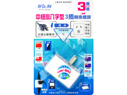 中紐澳八字型3插轉換插頭 UTA-2334