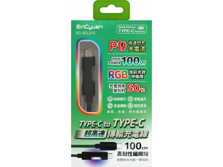 TYPE-C PD炫彩光效傳輸線1米 SC-3CL212